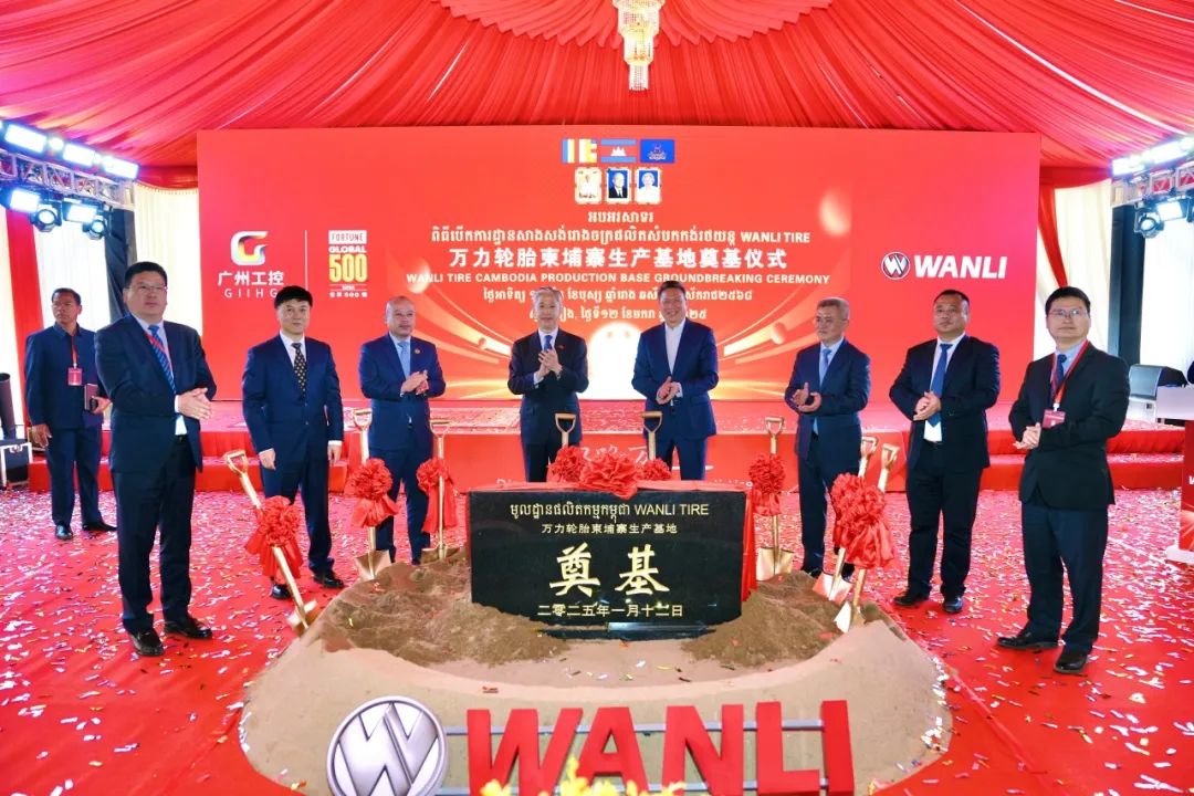 2025年1月12日,广州工控集团旗下万力轮胎柬埔寨生产基地奠基仪式在柬埔寨柴桢省新巴域特区举行,整个基地建成后将可年产1000万条半钢子午线胎和120万条全钢子午线胎,其不仅是万力轮胎在海外的首个项目,也是广州工控集团加速推进全球化战略,积极参与高质量共建“一带一路”的关键一步。